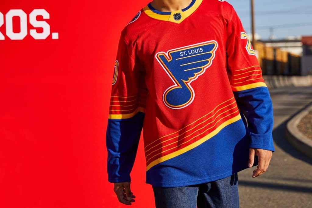 The upchucked pizza of jerseys… perhaps among the worst of the bunch, the Blues sweater (which they decided should be red?) brings back some of the worst elements of the 90s iteration, yet makes it even worse. I’m with Buzz, get a plate…