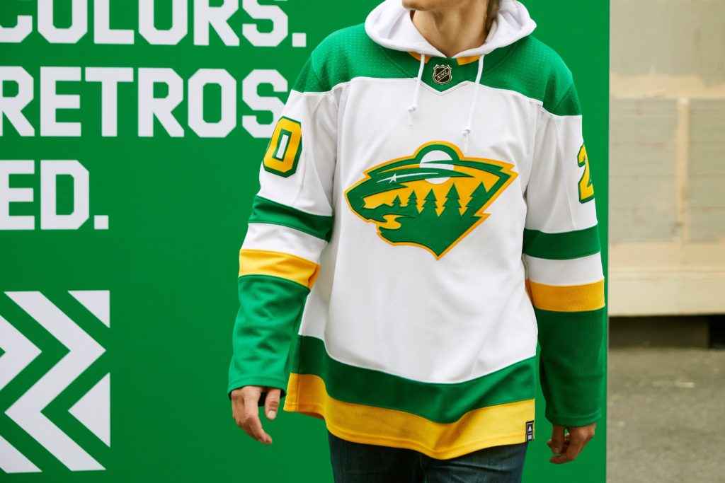 It’s impossible not to be at least a little happy about the North Stars color palette making a comeback here, but the Wild logo in yellow and light green leaves something to be desired.